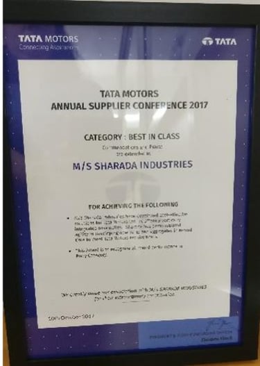 Strategic Partnerships and Expansion A pivotal moment arrived when the company secured a contract with Tata Motors (formerly TELCO) to manufacture storage bins. As Tata Motors expanded its operations into truck manufacturing, the demand for specialized sheet metal fabricators grew. Seizing this opportunity, Mr. Modak rebranded the company as Sharada Industries in 1982 to align with this new strategic venture.